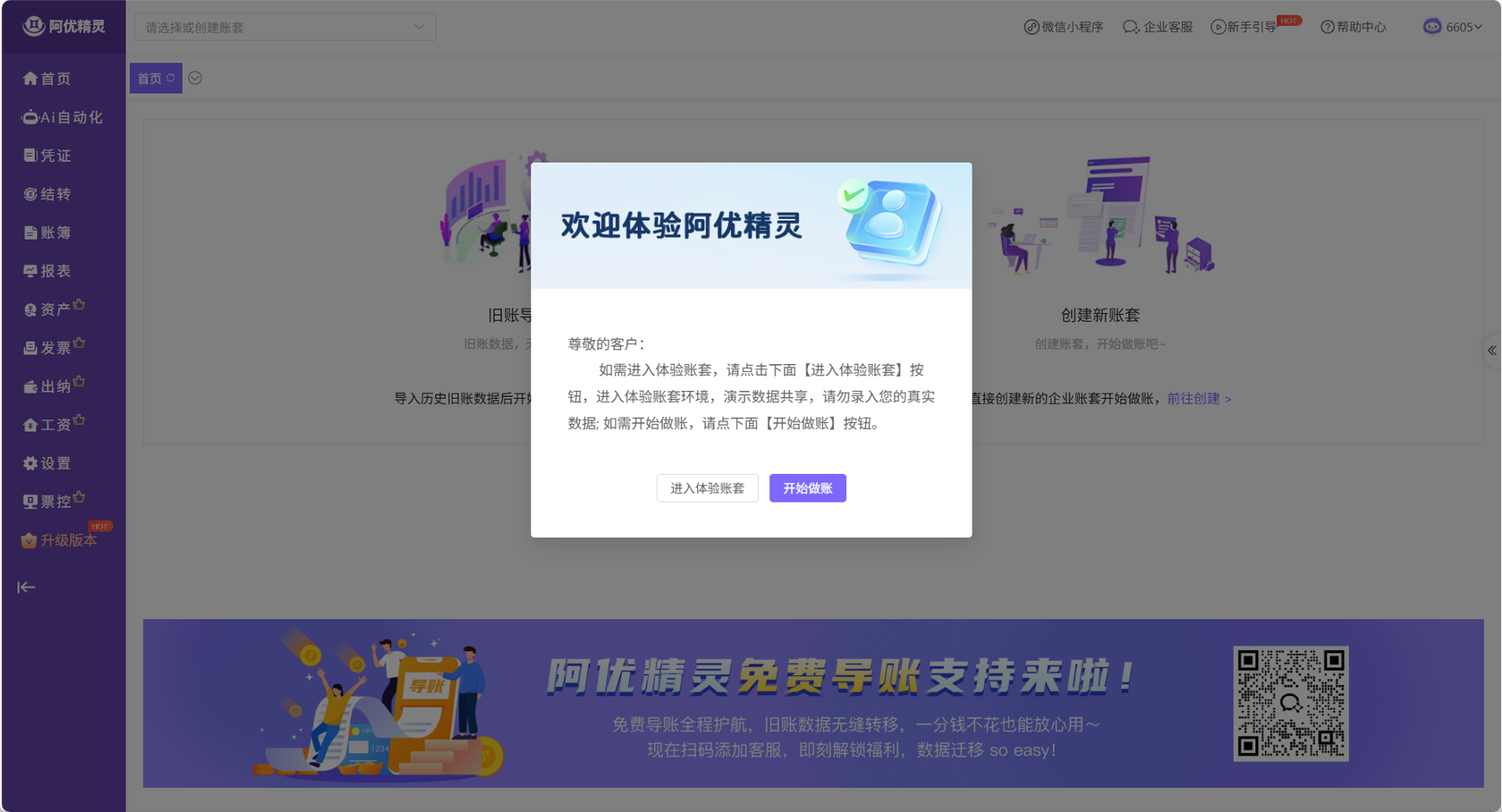 欢迎加入阿优精灵!为了让您充分体验“AI 自动化做账”的魅力,我们为每一位新注册用户准备了 30 天的 AI 财税旗舰版(全功能) 免费试用权益。
