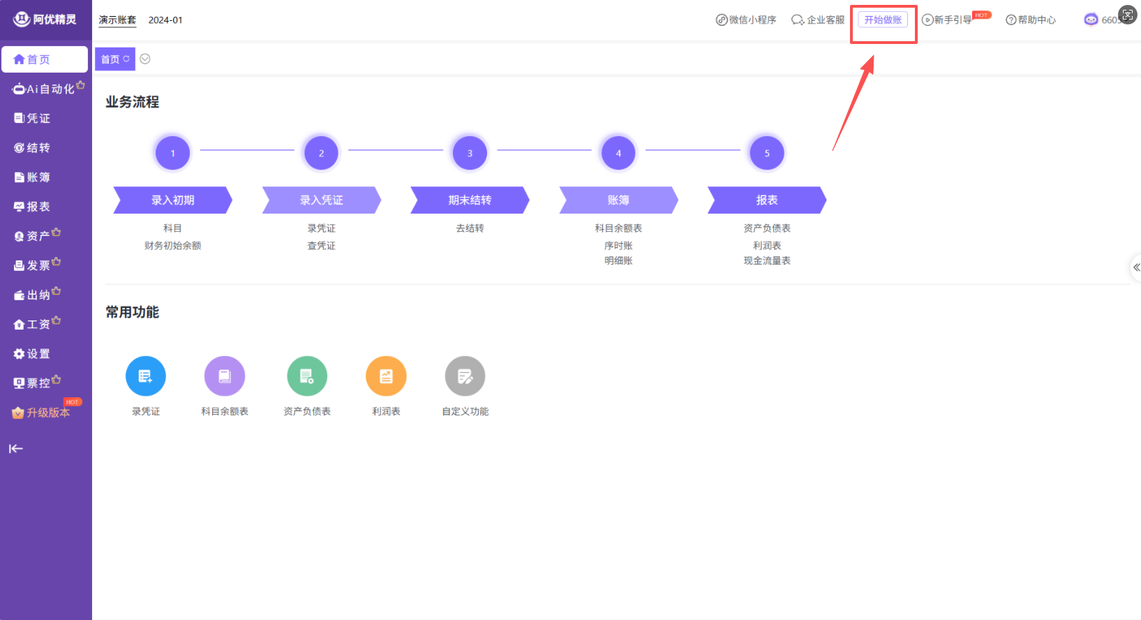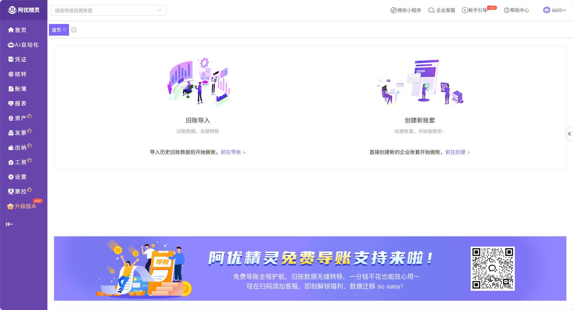 - 恭喜!您的该账套现已升级为 AI 旗舰版,所有高级功能(如 OCR 发票识别、银企直连、自动结转等)均已解锁。