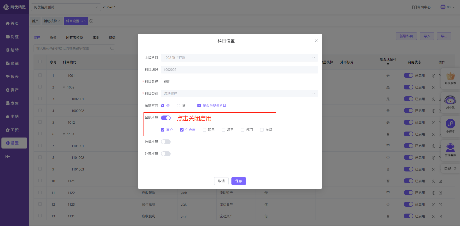 启用辅助核算后是否支持取消,需要看科目是否有录入过数据,包括财务初始余额、凭证等数据,具体分为以下两种情况: