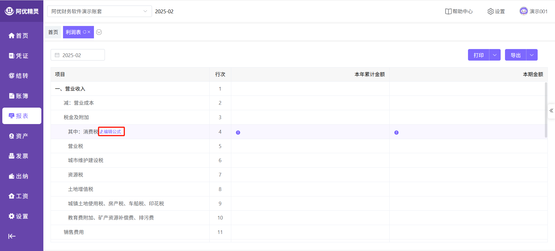 ①系统为您预设了报表默认公式,如您需要修改,可以点击对应行的【编辑公式】按钮进行修改;