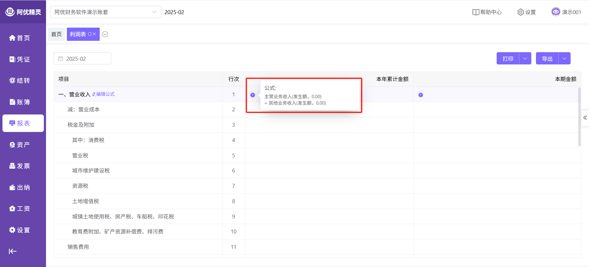 ③如需查看报表公式,点击该行的【 !】即可查看;