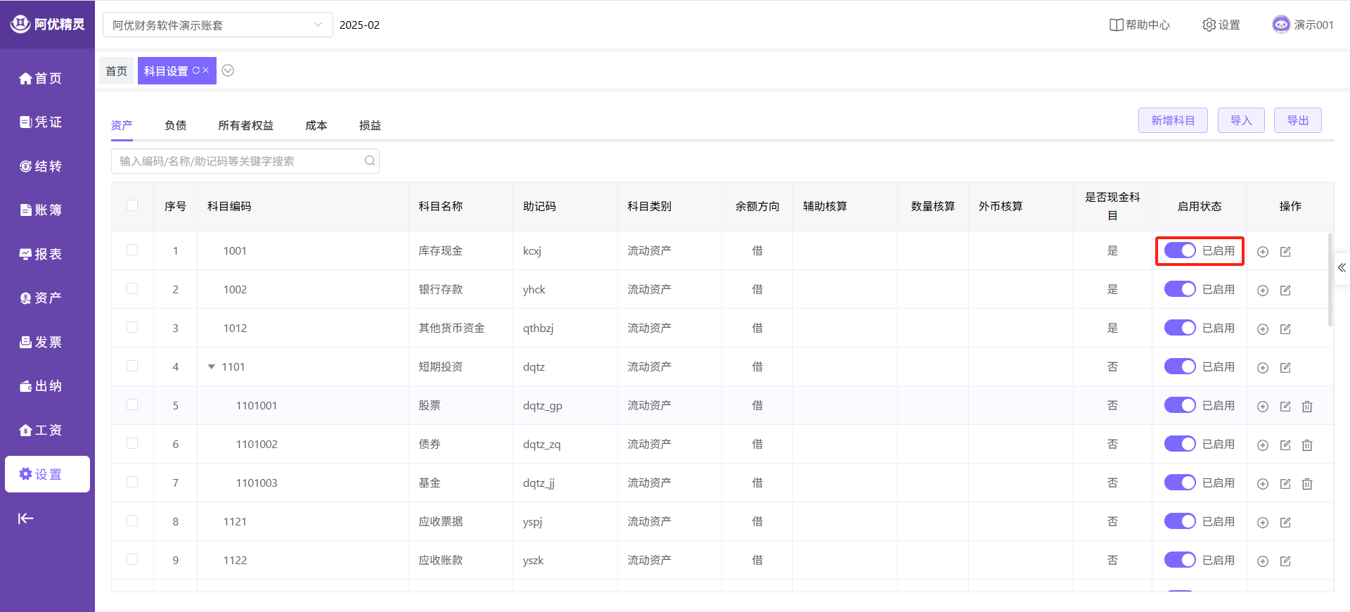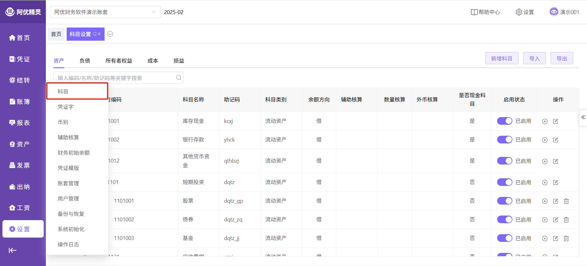 点击主菜单的【设置】-【科目】即可进入功能页面。