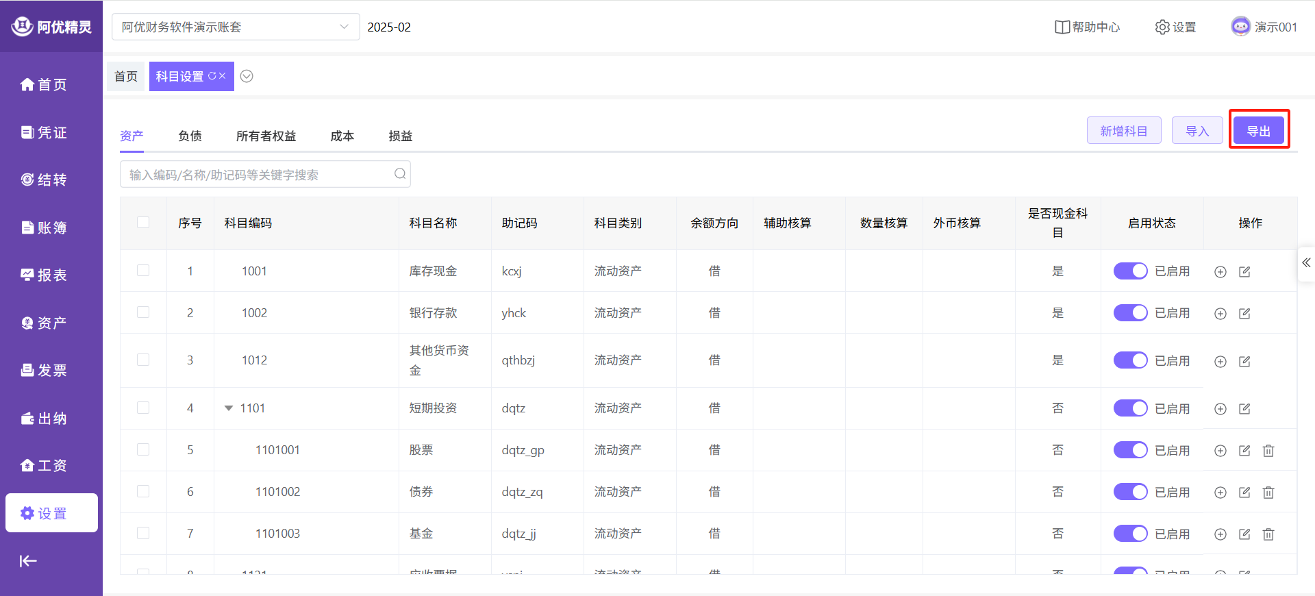 导出所有科目
