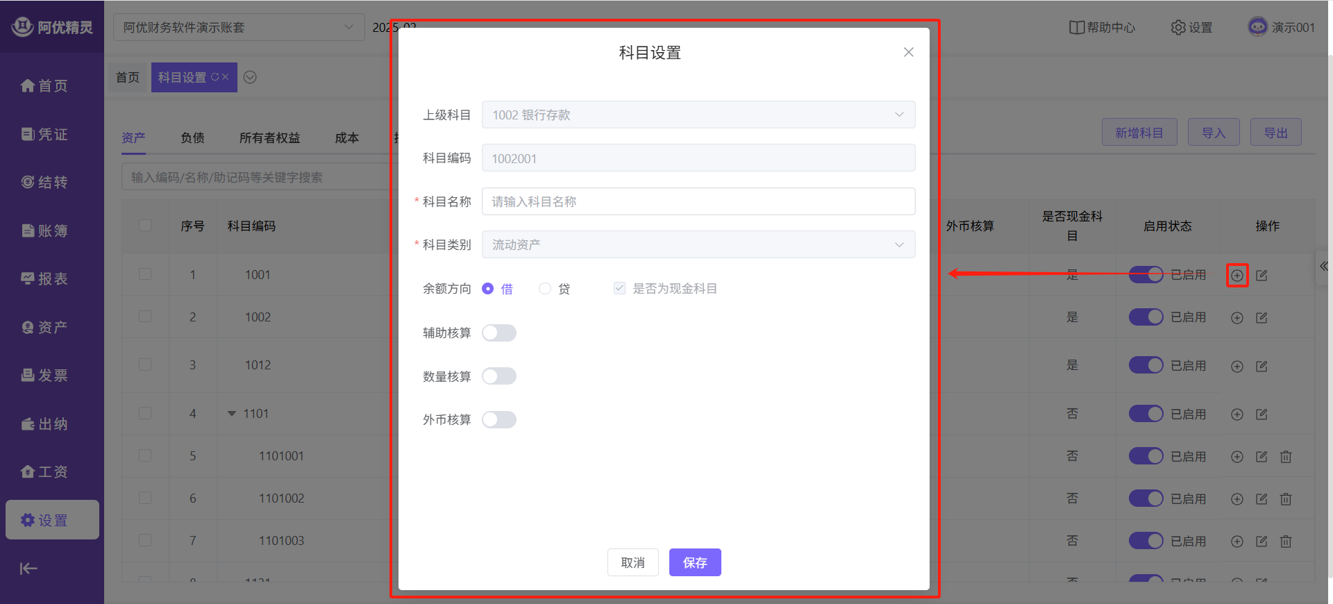 自动填充上级科目信息,快速新增科目