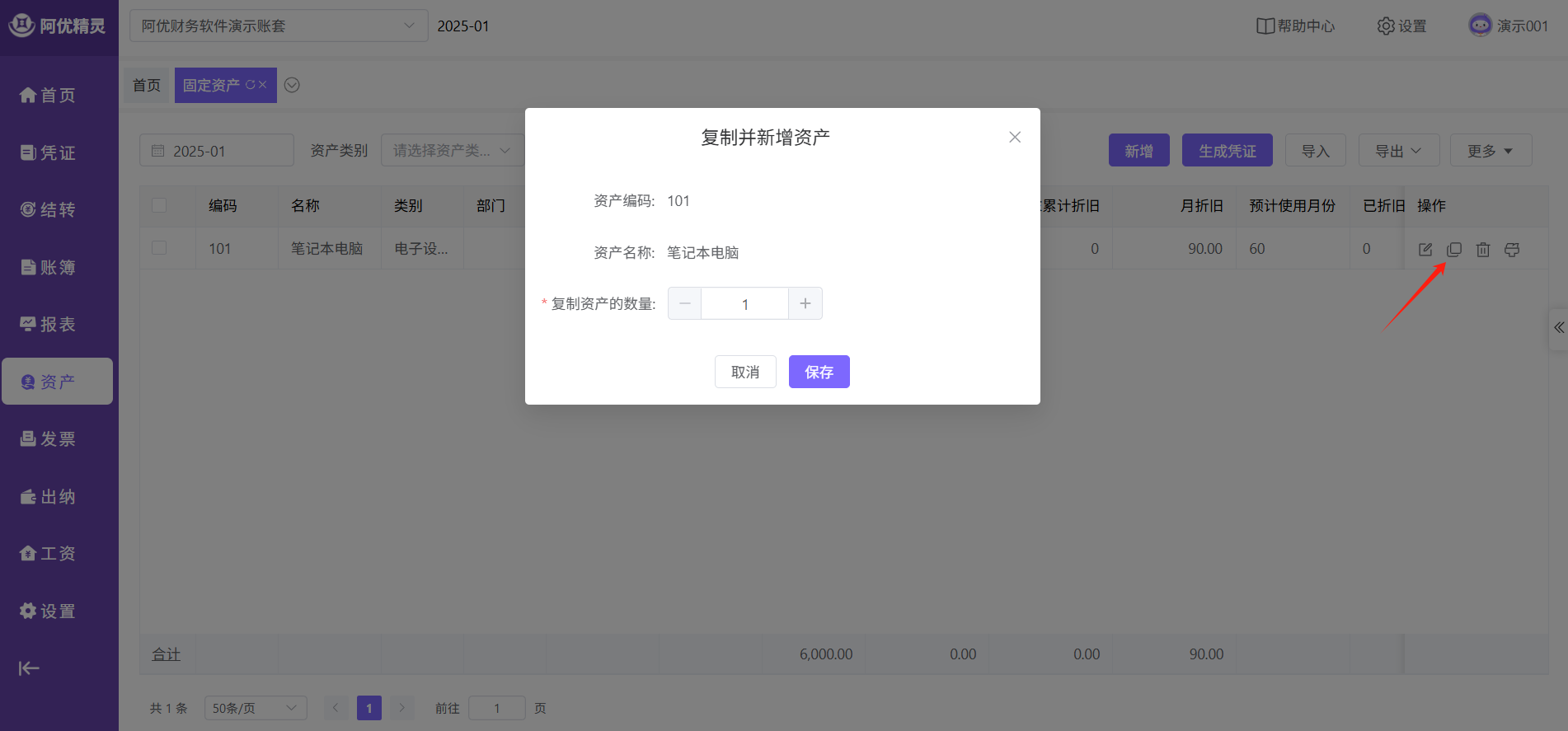 资产复制可以复制多个,编码会按当前格式加1,其他不变