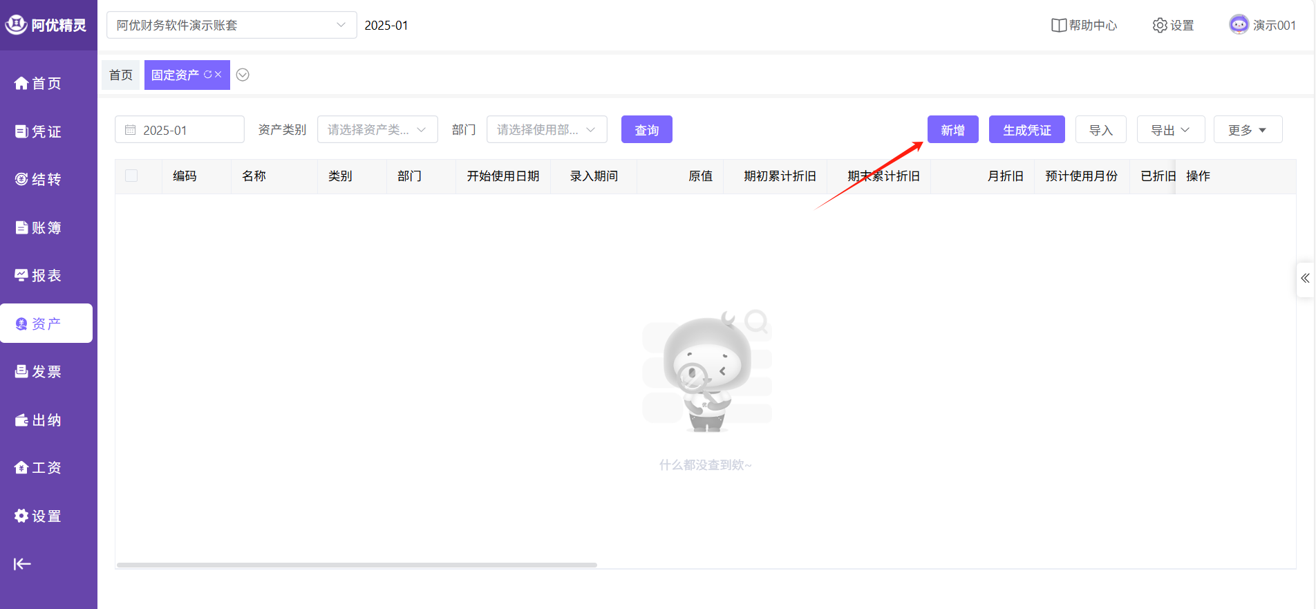点击主菜单的【资产】-【固定资产】即可进入功能页面。