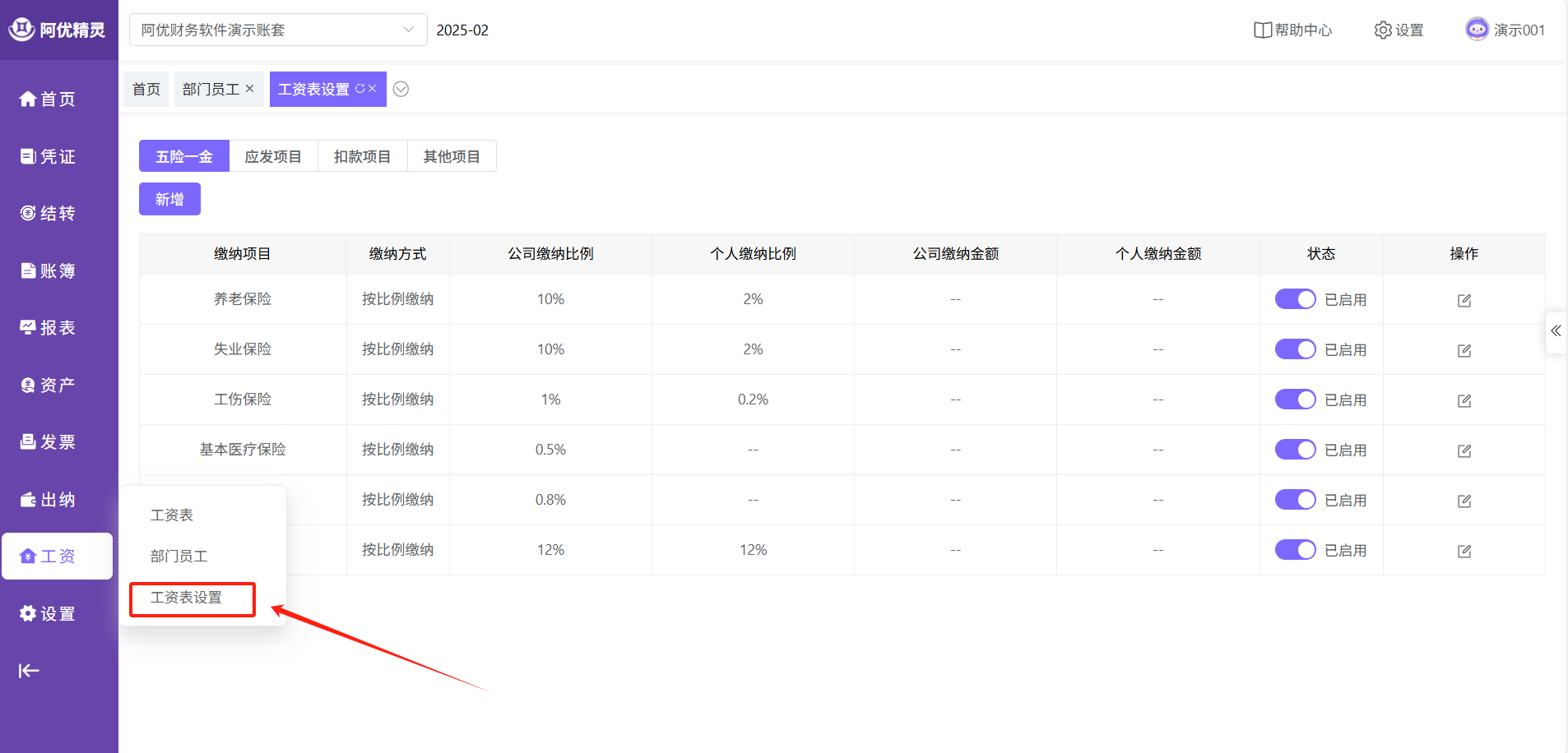 点击主菜单的【工资】-【项目设置】即可进入功能页面。