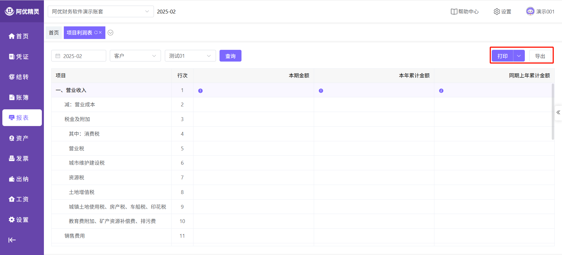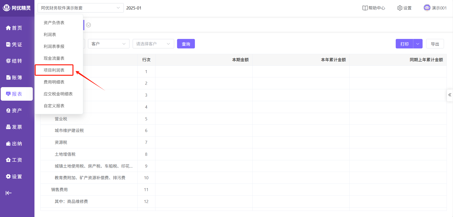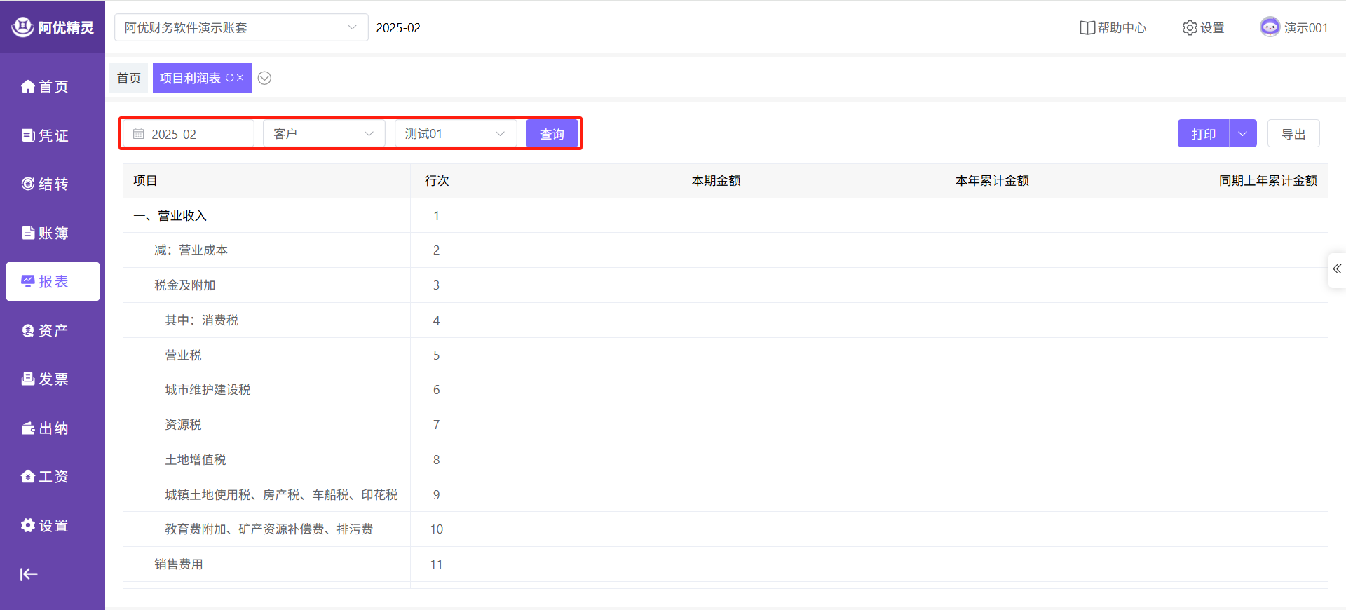 项目利润表跟利润表一样,只是添加了项目查询条件,只统计对应项目的利润数据